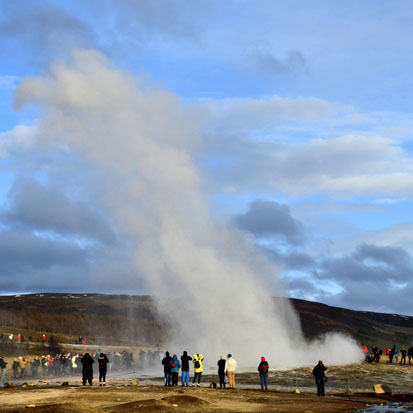 ‘নর্দার্ন লাইটস’ ছাড়াও আইসল্যান্ড-এর প্রসিদ্ধি আগ্নেয়গিরি, হিমবাহ ও গীজারের দেশ ব’লে। আমরা এবার সেই সব দ্রষ্টব্য দেখতে সারাদিনের জন্য বেরোলাম ‘গোল্ডেন সার্কেল ট্যুর’-এ। সকালের তাপমাত্রা ৭°C তাই যথারীতি পাতলা-মোটা মিলিয়ে কয়েক প্রস্থ গরমজামা পরতে হ’ল। প্রথমে যাবো শহর থেকে চল্লিশ কিমি দূরে Thingvellir (উচ্চারণ ‘থিঙ্কভেল্লির’) National Park. বাসে উঠতেই গাইড আমাদের প্রত্যেকের হাতে একটি করে ‘ট্যাবলেট’ ধরিয়ে দিলেন যার কল্যাণে আমরা ‘ইয়ার ফোন’ লাগিয়ে যখন যেখান দিয়ে বাস যাচ্ছে সেখানকার বিশিষ্টতার বর্ণনা শুনতে পাচ্ছিলাম।