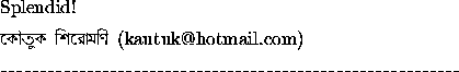 • কীভাবে লেখা পাঠাবেন তা জানতে এখানে ক্লিক করুন | "পরবাস"-এ প্রকাশিত রচনার দায়িত্ব সংশ্লিষ্ট রচনাকারের/রচনাকারদের। "পরবাস"-এ বেরোনো কোনো লেখার মধ্যে দিয়ে যে মত প্রকাশ করা হয়েছে তা লেখকের/লেখকদের নিজস্ব। তজ্জনিত কোন ক্ষয়ক্ষতির জন্য "পরবাস"-এর প্রকাশক ও সম্পাদকরা দায়ী নন। | Email: parabaas@parabaas.com | Sign up for Parabaas updates | © 1997-2025 Parabaas Inc. All rights reserved. | About Us
