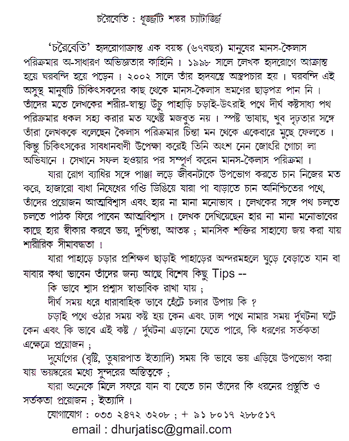 চরৈবেতি, ধূর্জ্জটি শঙ্কর চ্যাটার্জ্জি, হিমালয় ভ্রমণকাহিনি; Choroibeti, Dhurjoti Shankar Chatterjee
