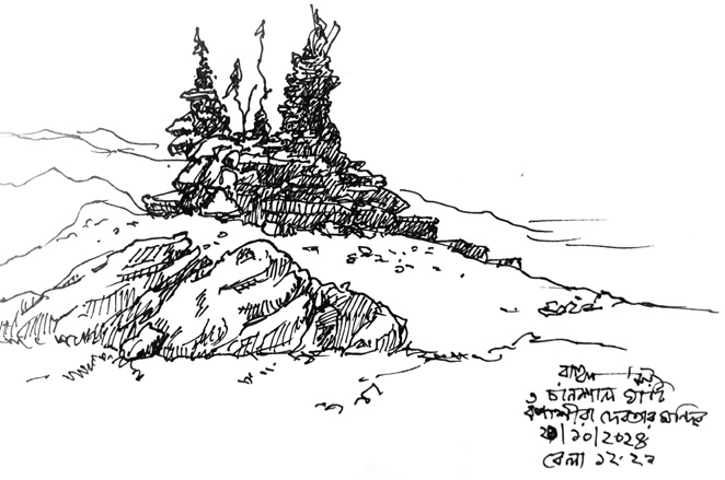 আবার সোনালী সকাল। তবে, কোথায় যেন একটু বিষাদের ছোঁয়া সেই আলোয়। এই দু দিনেই কেমন সকলে আপন হয়ে উঠেছিল। চমৎকার আলুর পরোটায় ব্রেকফাস্ট সেরে সাড়ে ন-টায় বুড়োবুড়ি উঠে বসল গাড়িতে। এত সুন্দর জায়গা, এত সুন্দর মনের মানুষদের ছেড়ে যেতে মন চাইছে না, কিন্তু যেতে তো হবেই, হয়ই।